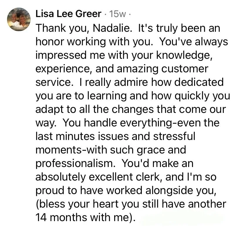 In 2023, I was recognized as the “Top Election Specialist” out of 120 counties for having, “The Best Voter Coding” in the state, at the Kentucky County Clerk’s Association meeting.